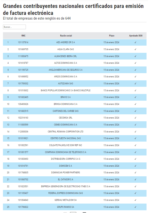 De 644 grandes contribuyentes nacionales obligados a implementar la facturación electrónica en el país, apenas el 8.07 % se ha certificado en la plataforma de la Dirección General de Impuestos Internos (DGII) como emisores de comprobante fiscal digital en su primera etapa. De esa proporción sólo hay dos de unas 40 empresas estatales.