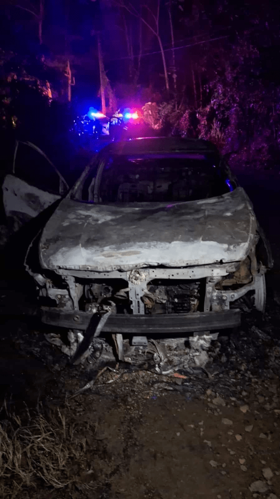 Los cadáveres de dos personas fueron hallados calcinados la noche de este miércoles, en el interior de un carro en llamas, en las proximidades de Loma Miranda, entre las provincias Monseñor Nouel y La Vega.