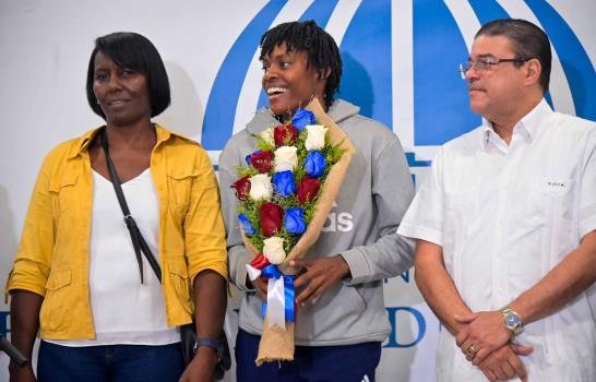 Paulino fue recibida por el Ministro Camacho y por el presidente del Comité Olímpico Dominicano, Garibaldy Bautista.