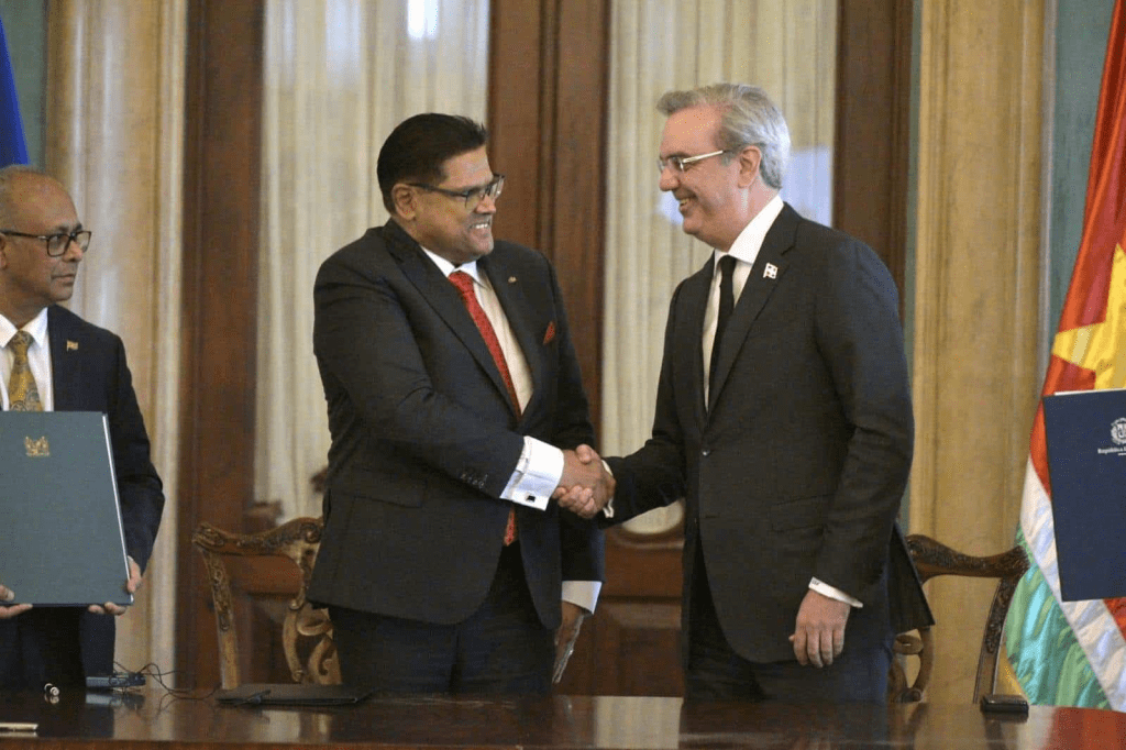 El memorando de entendimiento para la «cooperación en el área de la industria de hidrocarburos» fue rubricado por el Ministerio de Energía y Minas dominicano y el Ministerio de Recursos Naturales de Surinam. Establece «un marco para la colaboración en la exploración, producción y desarrollo de recursos energéticos, así como la implementación de tecnologías avanzadas y sostenibles».