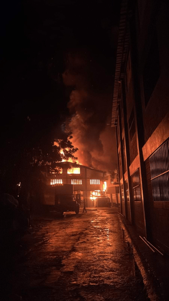 Desde la noche del jueves, unidades del Cuerpo de Bomberos de Santiago intentan apagar un incendio que afecta la instalación de una zona franca especial, dedicada a la fabricación de textiles, en Villa Liberación, La Otra Banda, al suroeste de la ciudad.