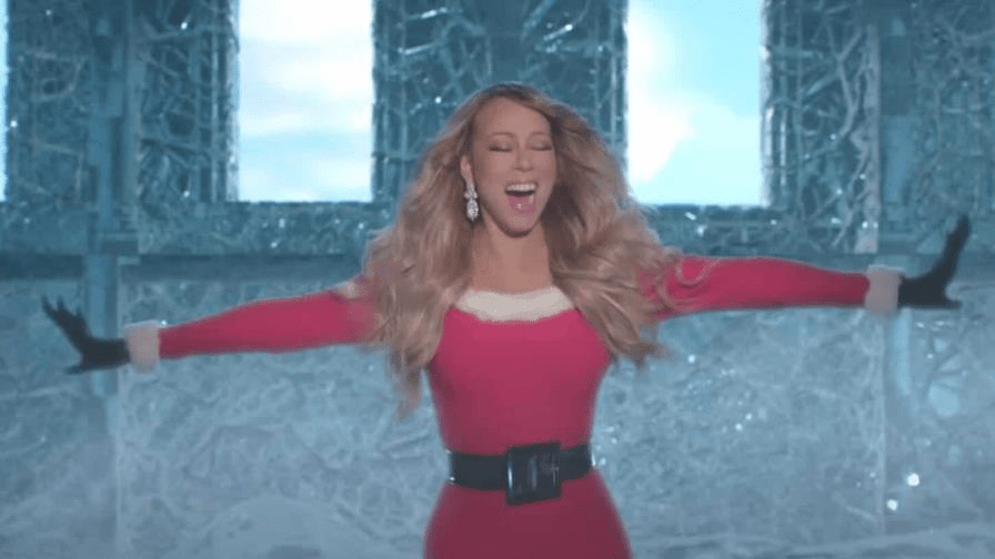 Una vez logra salir, la cantante exclama: «¡Es hora!» y, por supuesto, de fondo suena su canción que ya se ha convertido en un himno en esta época: «All I Want For Christmas Is You». Junto a ella se encuentran personas vestidas con motivos navideños que celebran con gran emoción la llegada de la temporada más alegre del año.