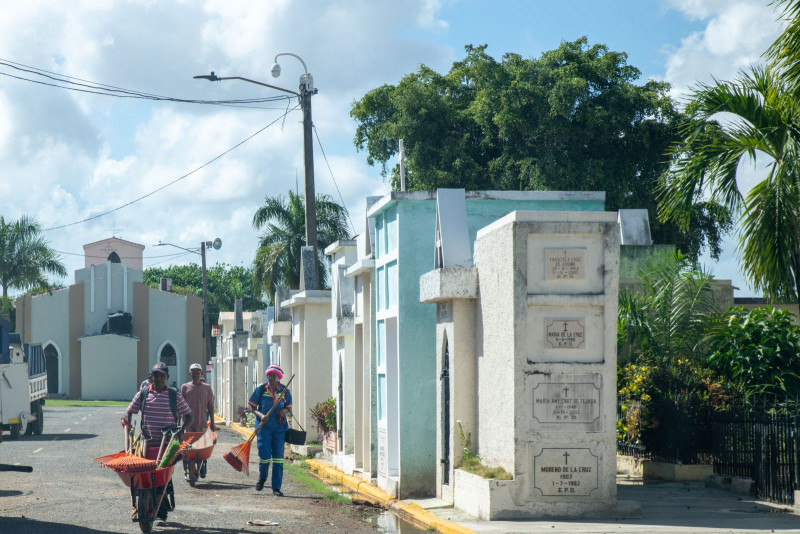 En tanto, en el cementerio de la Máximo Gómez los trabajadores de la Alcadía del Distrito realizaban limpieza de aceras, chapeo y rastrillo de césped.