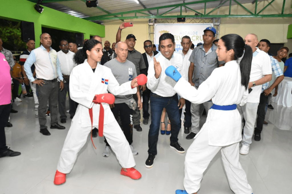 La Vega.- El alcalde de este municipio, Kelvin Cruz, inauguró en la comunidad de El Pino un moderno complejo deportivo con todos los estandartes de calidad, el cual incluye el club comunitario, una cancha de baloncesto, un estadio para jugar beisbol y softbol, así como la verja perimetral para garantizar la seguridad del entorno.