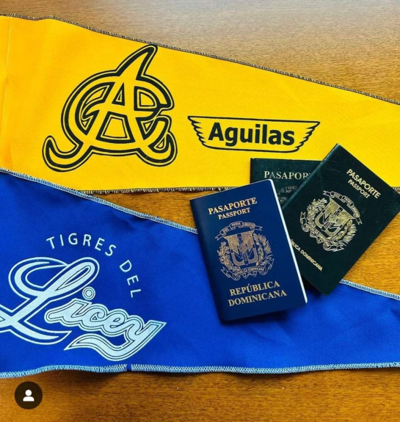 El comentario de la Embajada de los Estados Unidos en el país, está ilustrada con un “banner’, que tiene los nombres de los dos famosos equipos dominicanos y tres pasaportes sobre el mismo.