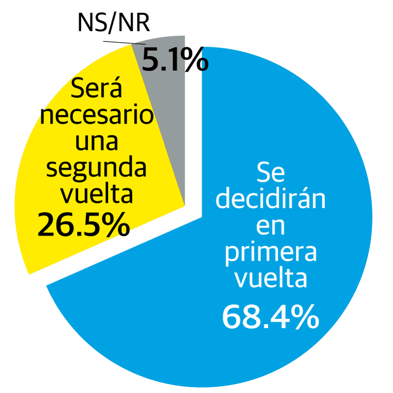 Sin duda alguna, en el juego de alianzas que los partidos mayoritarios han firmado en las últimas semanas, el supuesto de que las elecciones lleguen a una segunda vuelta ha jugado un papel importante. Pero el 68.4 % de los encuestados respondieron que, a su parecer, «Las elecciones se decidirán en primera vuelta». Un 26.5 % cree que será necesaria una segunda «y un 5.1 % no sabe o no contesta.