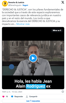 “Estoy aquí para presentarle un nuevo canal y programa en el cual discutiremos temas de derecho y justicia que son de interés para todos. A través de esta vía conoceremos juntos la verdad de lo que sucede en nuestro país, lo que sucede en tu comunidad”, asegura el principal acusado de Operación Medusa, expediente que incluye a más de 60 personas físicas y jurídicas.