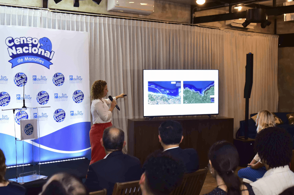 Rita Sellares, directora ejecutiva de Fundemar, presentó la metodología y los resultados de este esfuerzo para conocer la población actual de manatíes en la costa dominicana.