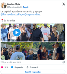 «La capital agradece tu cariño y apoyo @RomeoSantos @saymondiaz», escribió la alcaldesa.