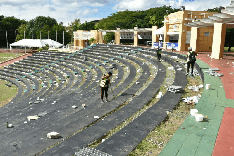 Al menos seis empleados del ayuntamiento de Santo Domingo Este, trabajaban en la limpieza del área, tras las celebraciones de la preparación de lo que sería el sancocho más grande del mundo