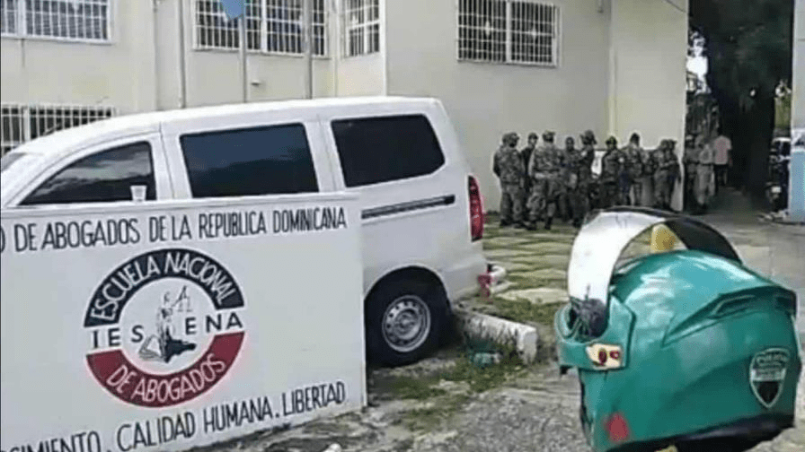 Decenas de policías se mantienen apostados en las sede del Colegio de Abogados de República Dominicana (CARD) , ubicada en la calle Juan Bautista, esquina Cayetano Germosén, en el sector Atalah, Distrito Nacional.