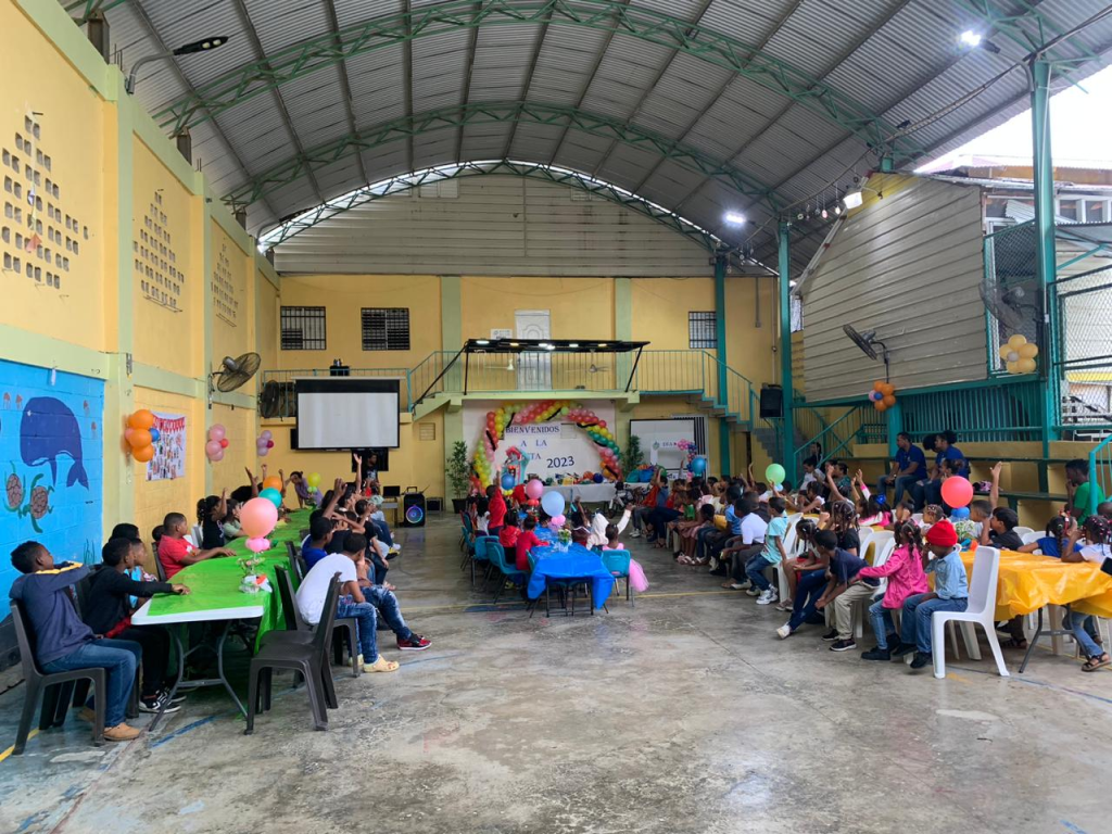 Santiago, República Dominicana.- La unión de voluntades alrededor del Programa Niños con una Esperanza, permitió que la institución pro niñez realizara un almuerzo navideño a alrededor de 200 niños, niñas, y adolescentes apadrinados por el programa, nativos de la comunidad Santa Lucía y otras barriadas circundantes del distrito municipal Santiago Oeste, en un encuentro en el que los protagonistas disfrutaron de sorpresas, juegos y premios.