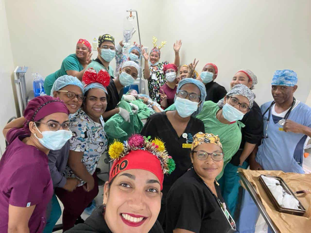 El equipo médico que participó en el parto estuvo conformado por los ginecobstetras Deysi Ramirez, Luis Manuel Castillo y Cinthia Lizardo, también por los residentes Katerin Mota, Fabiola Paulino, Yuleisy Román, Jennifer Castillo y José Peña.