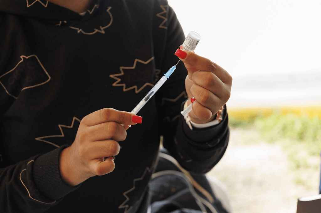 «Tengo cinco vacunas Covid y la de la influenza, aun así, cuando tenía cuatro vacunas, en agosto, salí positivo. Hay que cuidar la salud«, expresó Bienvenido Paredes, residente en el ensanche La Fe, en el Distrito Nacional, quien acompañaba a su hija Emily a la toma de muestras.