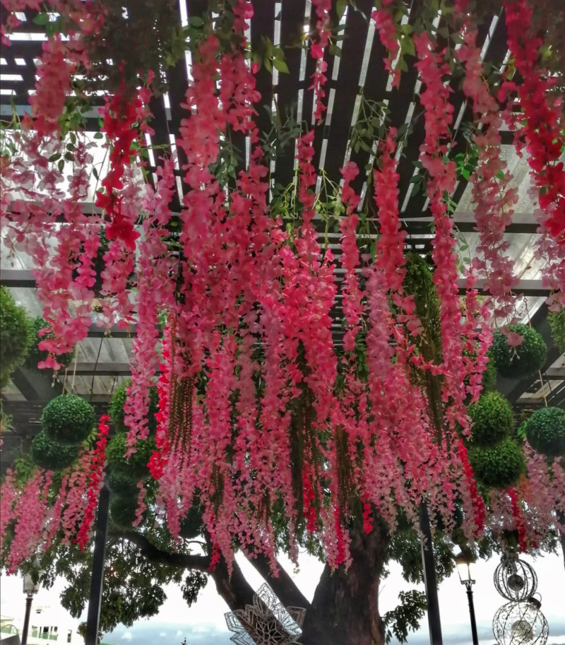 Nos acercamos a un vigilante a pedirle la dirección de la Casita de Rones. Nos mira con extrañeza. Señala la dirección y comenta: “Bueno, hay rones que no son muy fuertes…” ¿Qué habrá imaginado? “¡Mírala ahí!” digo a Fabiola. “Ahora me doy cuenta que la conocí años atrás. Cuando era el Centro de Información Turística de Puerto Rico”. Vamos a entrar, pero una cadena nos lo impide. Solo dan paso a los clientes. A una empleada le explicamos que queremos tomar unas fotos. Sonreída soltó la cadena. Entramos a un salón con butacas, y estantes repletos de botellas de muy variada forma y tamaño. Da paso hacia la terraza. De su techo caen en cascada flores rosadas. No sé si naturales o imitación. A la vista la zona del litoral, por donde atracan los cruceros. Ha de ser un espectáculo verlos con su iluminación nocturna. Hacia la derecha, distingo el edificio que aloja la Aduana. Data de 1924. (La Casita, en la Plaza Dársenas, fue levantada en 1937).