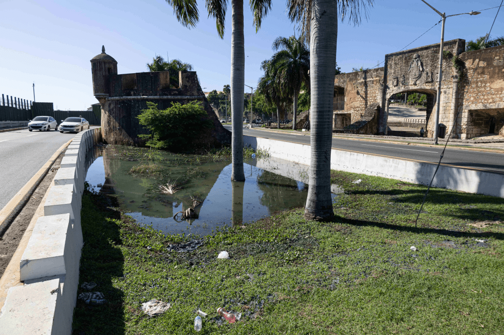 El Fuerte San Diego divide la Avenida del Puerto o Francisco Alberto Caamaño Deñó en dos, justo al frente del Alcázar de Colón. En la parte norte y sur, el agua se acumula en una especie de hondonada y, aunque los charcos han bajado un poco, se mantiene el estancamiento de agua.