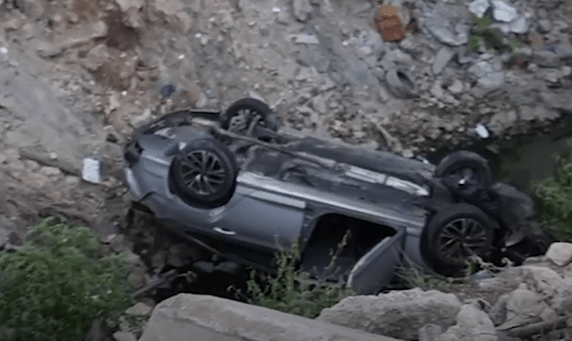 Un carro cayó este jueves en el mismo hoyo donde se produjo un accidente el pasado 30 de noviembre en el sector de Quita Sueño, de Haina, que dejó 13 muertos. El vehículo quedó con las cuatro gomas hacia arriba.