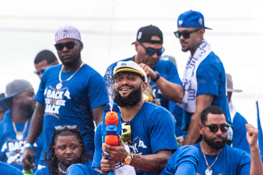 El conjunto azul arrancó su caravana del triunfo en el estadio Quisqueya Juan Marichal y realizó un recorrido por las principales vías y barriadas de la ciudad capital, para compartir el logro con su gran fanaticada.