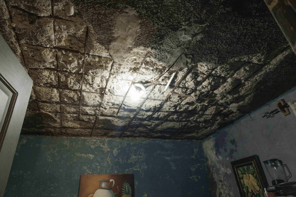 Keyra Barona es una de las más afectadas junto a sus tres hijos y esposo. Están atemorizados desde el domingo, cuando la pared de su cocina se desplomó. «Desde el domingo todavía no hemos dormido», dijo mientras señala el espacio abierto que quedó luego de la caída de la pared.