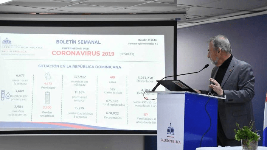 Al dar lectura al boletín 1,144, el titular de la Dirección General de Epidemilogía (Digepi), Ronald Skewes, confirmó este miércoles la detección de 419 nuevos contagios por el virus Sars-COV-2, pero solo quedan 385 casos activos.