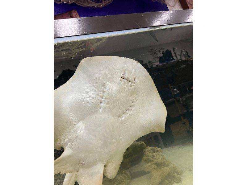 «El bulto empezó a crecer y a crecer, y pensamos que podía ser un cáncer», contó a la AFP Kinsley Boyette, directora adjunta del acuario. Quistes de ese tipo pueden desarrollarse en los órganos reproductivos de las rayas cuando éstas no se aparean, explicó.