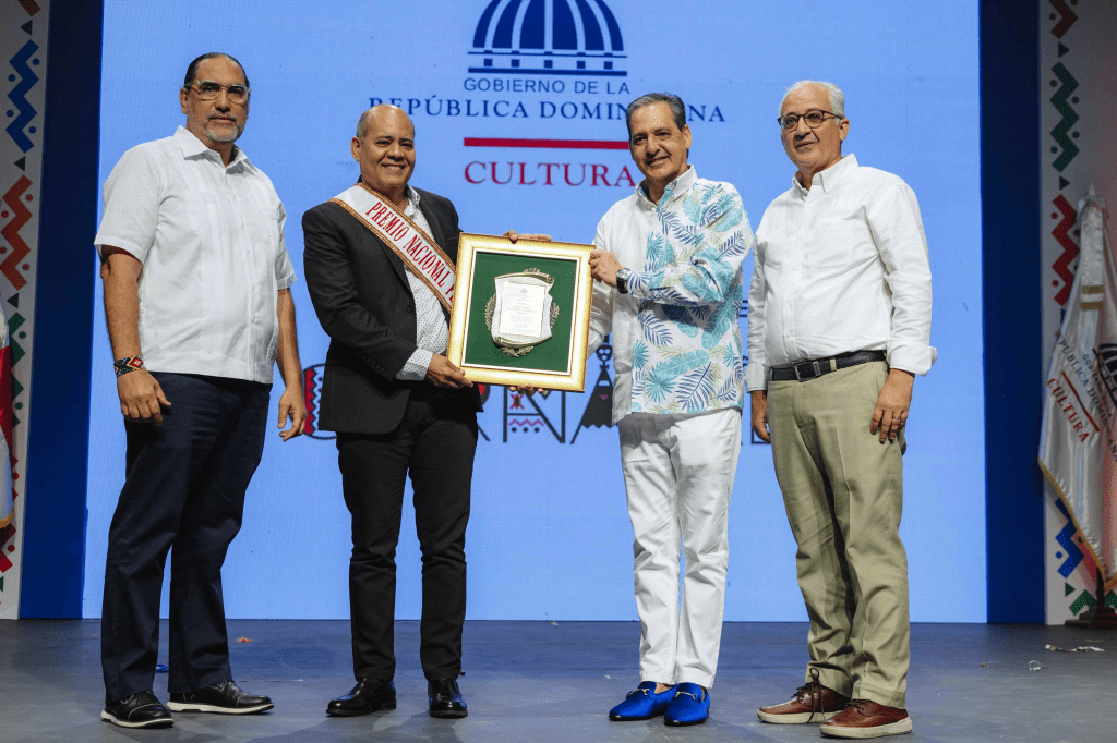 Asimismo, el MINC también hizo entrega del premio Felipe Abreu al Mérito del Carnaval Dominicano 2024 a Juan Óscar Souffront Rodríguez (Yanco), quien fue elegido por sus invaluables aportes en pro del fortalecimiento y proyección del carnaval dominicano.