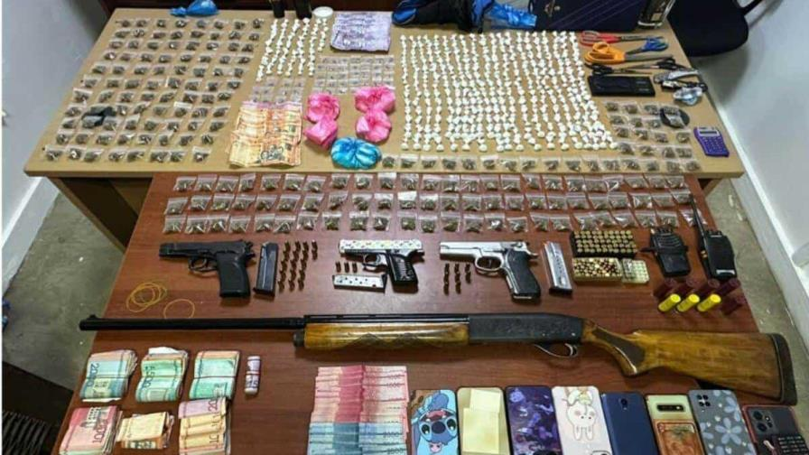 Entre lo decomisado figuran cuatro armas de fuego sin ningún tipo de documentos, incluyendo una escopeta y tres pistolas, con 28 municiones y más de 57 cartuchos, 551 porciones de diferentes estupefacientes, con peso aproximado de 1,181 gramos, cinco tijeras y una balanza.