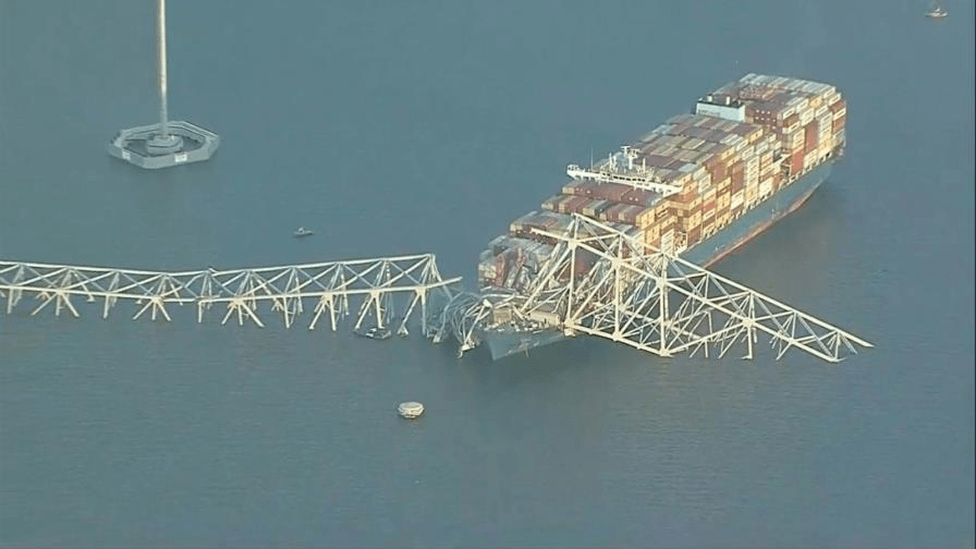 Synergy Marine Group — propietario y administrador de la embarcación, llamada «Dalí» — confirmó que el carguero chocó contra un pilar del puente alrededor de las 01:30 de la madrugada mientras estaba bajo el control de dos capitanes. La tripulación, incluyendo los capitanes, estaban localizados y no se reportaron heridos.