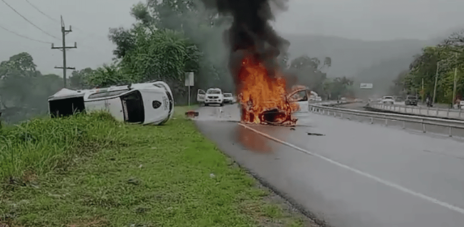 Sin embargo, la jeepeta se incendió y se redujo a cenizas, en medio de la autopista