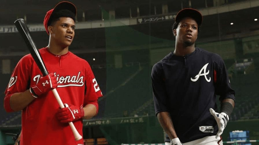 El venezolano y el dominicano aterrizaron en 2018 en la Gran Carpa. Acuña lo hizo 27 días antes y en la alfombra roja que se ganó como el prospecto número de Baseball America, y dos en MLB Pipeline y Baseball Prospectus, solo detrás de Shohei Ohtani.
