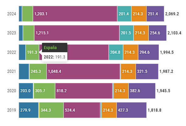 Los compromisos con esta nación europea se han expandido en un 129.42 % en los últimos cinco años, pasando de 524.4 millones de dólares en el 2019 a los 1,203.1 millones de dólares que se adeudaban hasta febrero.