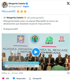 El encuentro ocurrió el pasado 25 de marzo cuando los principales dirigentes de los partidos que conforman la Alianza Rescate RD se reunieron para informar que el candidato presidencial que quedara en primer lugar en las elecciones de mayo próximo recibiría el apoyo de los otros aspirantes.