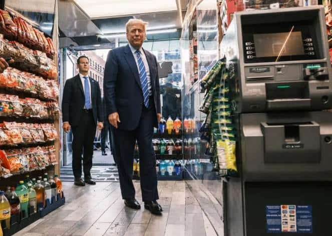 Trump visitó la bodega «Sanaa» que anteriormente era conocida como «Blue Moon Convenience Store«, para reunirse con el copropietario, Maad Ahmed, y el defensor de las pequeñas empresas, el dominicano Francisco Marte.