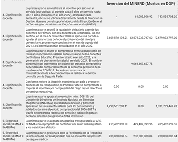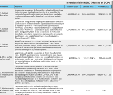 De acuerdo con el documento, en este tiempo, Educación ha invertido un total de RD$106,763,204,675.91 en la calidad educativa, mantenimiento e infraestructura escolar, dignificación docente y la seguridad social: Administradora de Riesgos de Salud para Maestros (ARS Semma) y el Instituto Nacional de Bienestar Magisterial (Inabima).