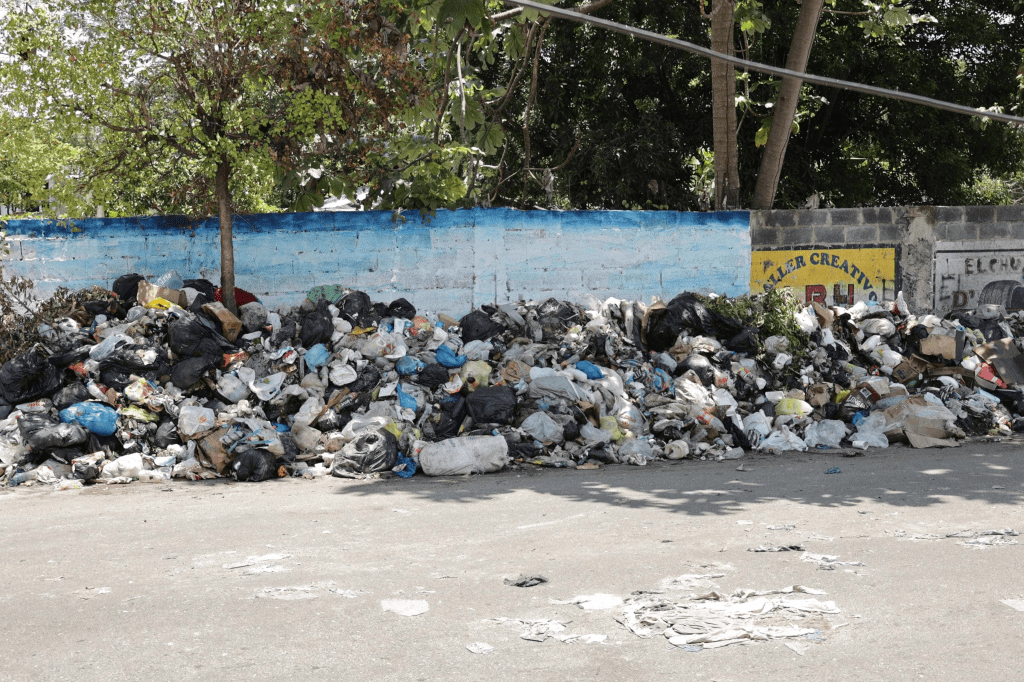 A lo largo de toda la avenida principal de Los Alcarrizos, que conduce directamente al palacio municipal, pueden verse decenas de montañas de basura este miércoles.