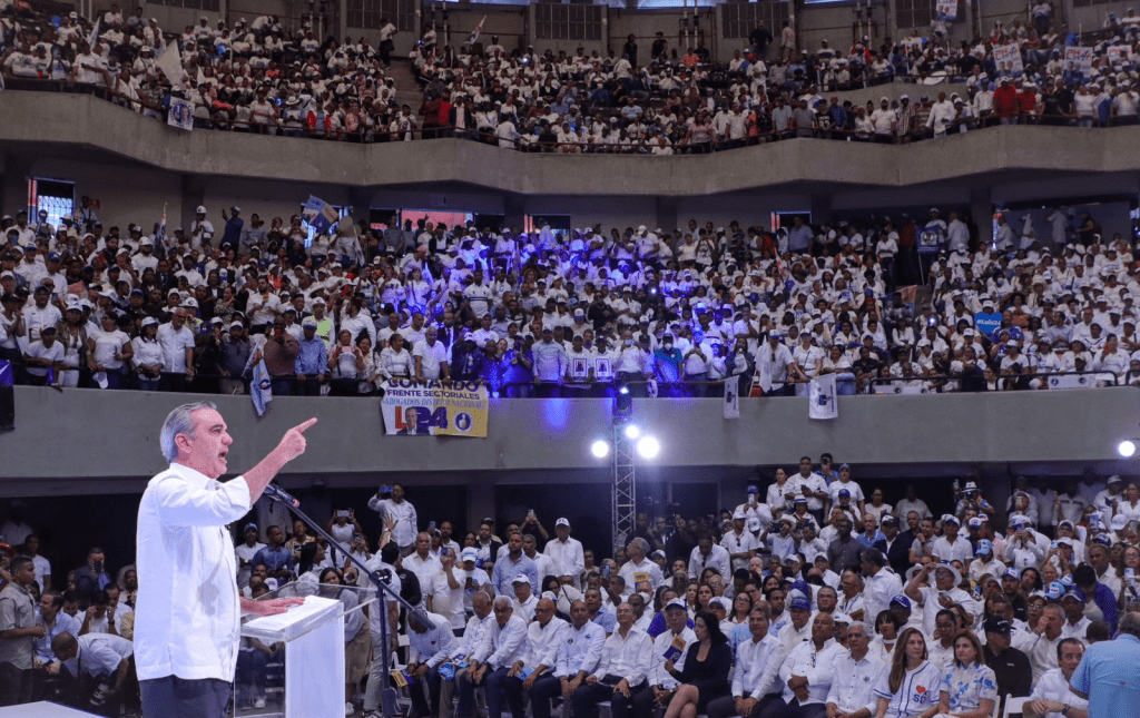 Abinader acompañado de la Raquel Peña, candidata a la vicepresidencia, en el acto con los frentes sectoriales del Distrito Nacional celebrado en el Coliseo Carlos Teo Cruz, expuso que si en momentos difíciles como los que ha tenido que enfrentar ha logrado hacer un gobierno que hoy tiene el apoyo en toda la sociedad, hacerlo en mejores tiempos como los próximos 4 años, le permitirá dejar un legado en un camino hacia el desarrollo, la institucionalidad y hacia mejorar la calidad de vida los dominicanos y las dominicanas.