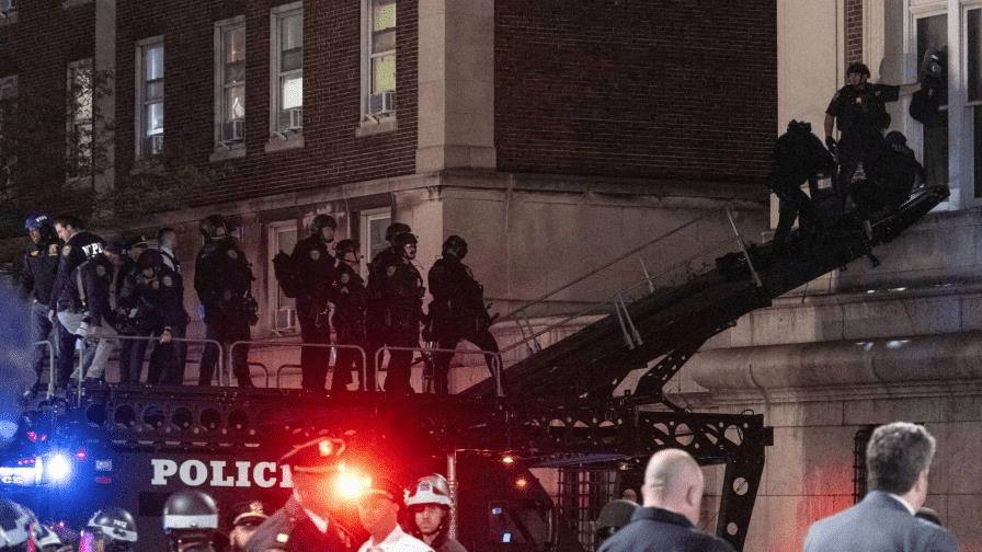 Agentes de la policía de la ciudad de Nueva York entraron en el campus de Columbia después de que la universidad pidiera ayuda, según un comunicado publicado por un vocero. Se desalojó un campamento en los terrenos de la escuela y el edificio de Hamilton, donde una hilera de policías entró por una ventana del segundo piso con una escalera.