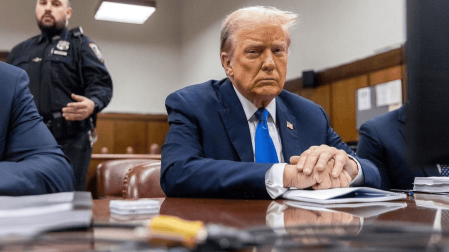Con años de preparación, el enfrentamiento en persona entre el expresidente y el actor porno que se ha convertido en uno de sus némesis ocurrió el martes en un tribunal de Nueva York que se ha convertido en el escenario del espectáculo histórico del juicio de Trump, donde la seriedad del primer juicio penal de un excomandante en jefe de Estados Unidos choca con una historia de sexo grosera y llamativa. tabloides y sobornos.