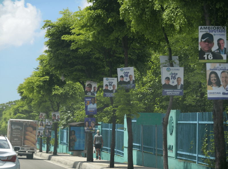 Desde postes de luz hasta áreas verdes, que deberían ser protegidas teniendo en cuenta su aporte medioambiental al país, se encuentran saturadas en varias localidades del Gran Santo Domingo por los afiches políticos que han sido colocados con miras a los sufragios congresuales y presidenciales programados para el día 19.
