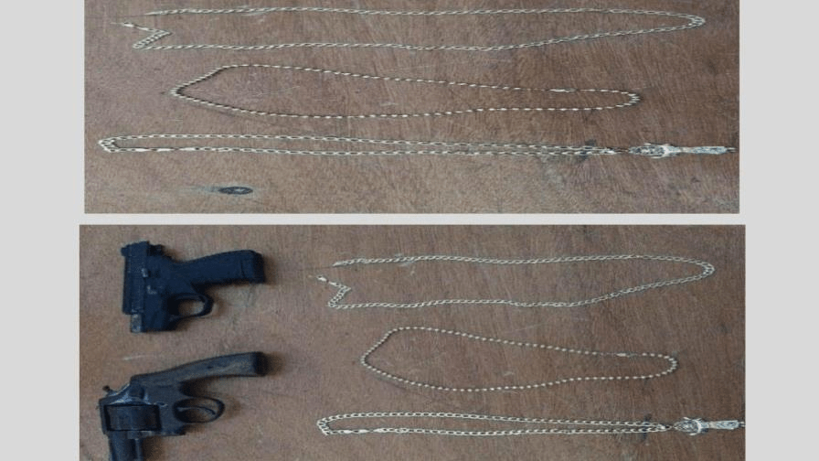La institución del orden precisó que le fueron ocupados dos armas de fuego, incluyendo un revólver de marca ilegible, con cuatro cápsulas, y una pistola marca Zoraki M906, negra, calibre 9 milímetros.