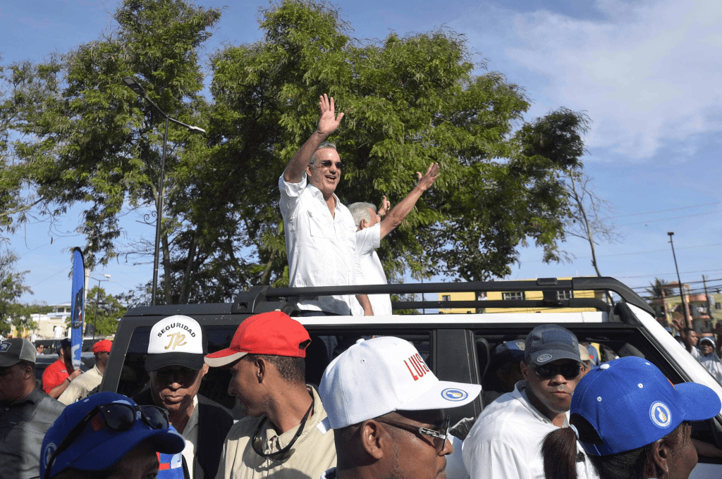 En algunos puntos se instalaron tarimas para animar la ruta. En una de ellas, casi al término del recorrido, el merenguero Omega amenizó el ambiente, al ritmo de «cuatro años más con Luis».