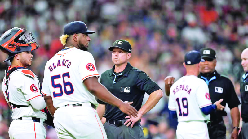 El lanzador de los Astros, Ronel Blanco , uno de los jugadores más brillantes del equipo en lo que va de la temporada, fue expulsado después de la tercera entrada del juego del martes contra los Atléticos en el Minute Maid Park después de que los árbitros inspeccionaran su guante.