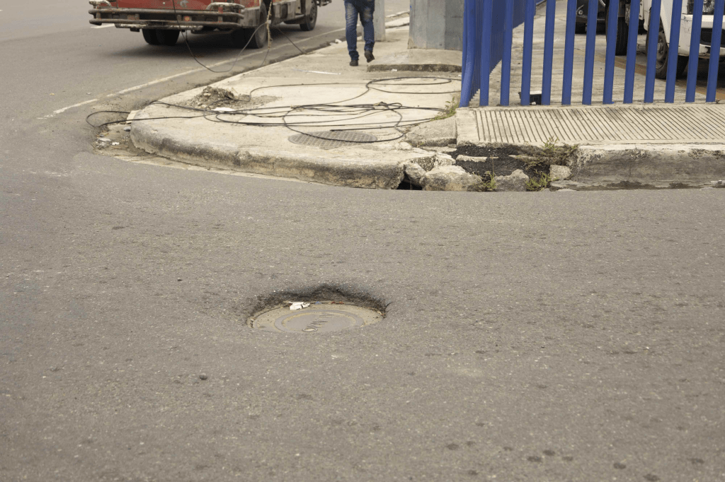 En la avenida México con Juana Saltitopa, en Villa Francisca, Distrito Nacional, había un hoyo del sistema cloacal que obstruía el tránsito hacia el puente Ramón Matías Mella y el Ministerio de Obras Públicas solucionó el problema en todo un día.