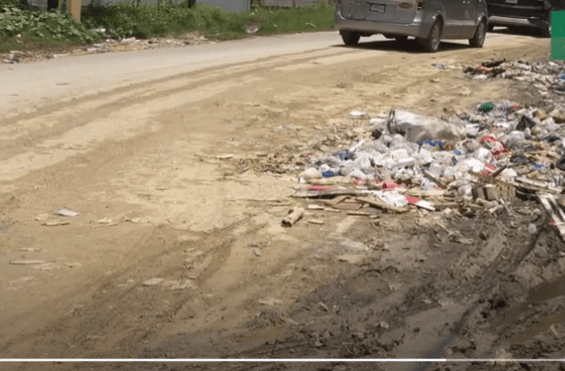Camilo Sandoval informó que cuando se construyó la escuela José Francisco Peña Gómez se le «tiró un chin de asfalto», pero que gran parte esta intransitable.