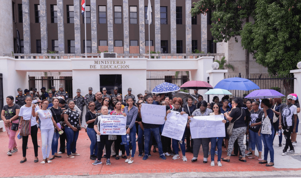 «Queremos revisión«, «No más masacre para los postulantes«, fueron las frases exclamadas por docentes en las afueras del Ministerio de Educación (Minerd) este lunes, quienes se manifestaron por la presunta manipulación en los resultados de las pruebas del Concurso de Oposición Docente 2023.