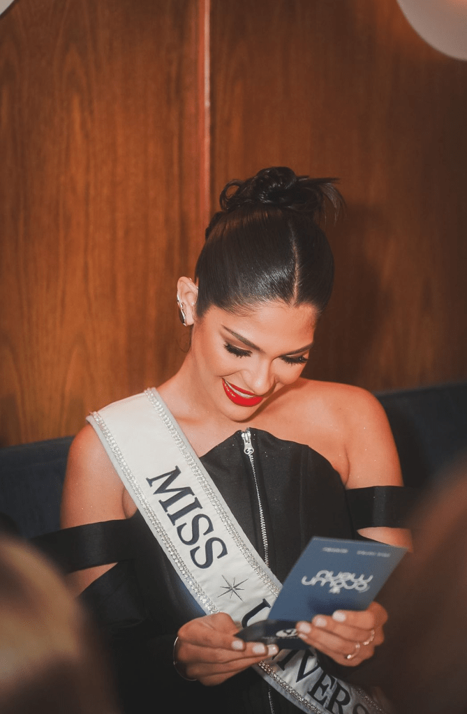 Santo Domingo, D.N.- En su primera noche en suelo dominicano la Miss Universe 2023, Sheynnis Palacios fue agasajada en el restaurante Petit Comité y recibida por sus anfitriones Gladys Taveras y Frank Díaz.