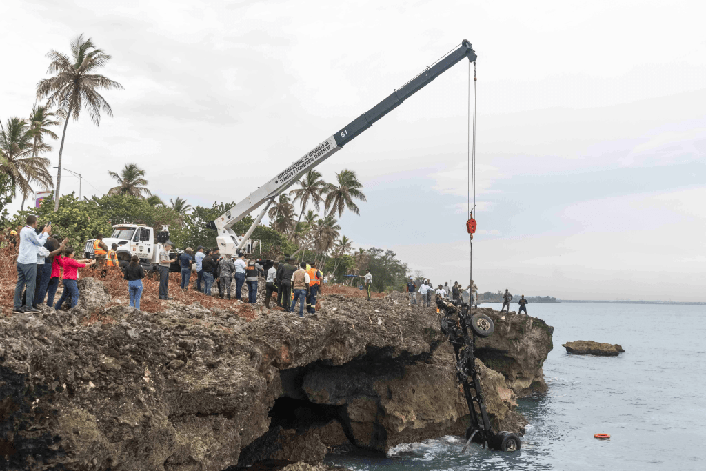Este miércoles con las aguas más tranquilas, la Dirección Central de Investigaciones Criminales (Dicrim) solicitó la cooperación de los bomberos de Santo Domingo Este, quienes en efecto encontraron en las profundidades del mar el chasis y otras partes del vehículo pesado en el perímetro del kilómetro 18 de la autopista Las Américas.
