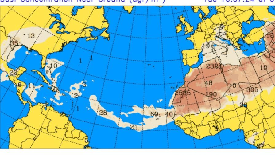 Este martes prevalece un panorama meteorológico estable con nubes dispersas, muchas horas de sol y temperaturas calurosas, debido a una masa de aire con poco contenido de humedad y algunas partículas de polvo proveniente del Sahara.