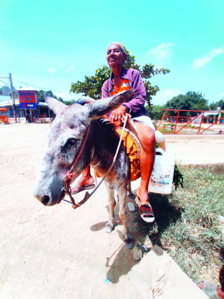 Doña Ángela, quien se encuentra ciega de un ojo, tiene varias décadas trabajando en un burro como medio de transporte para comprar alimentos con el dinero que logra ganar a través de la venta de la leche.