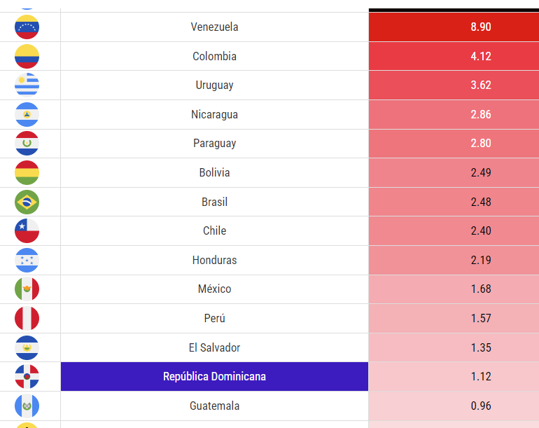 A continuación se muestran ordenados los países en el orden del ranking que publicó ayer Bloomberg Línea.